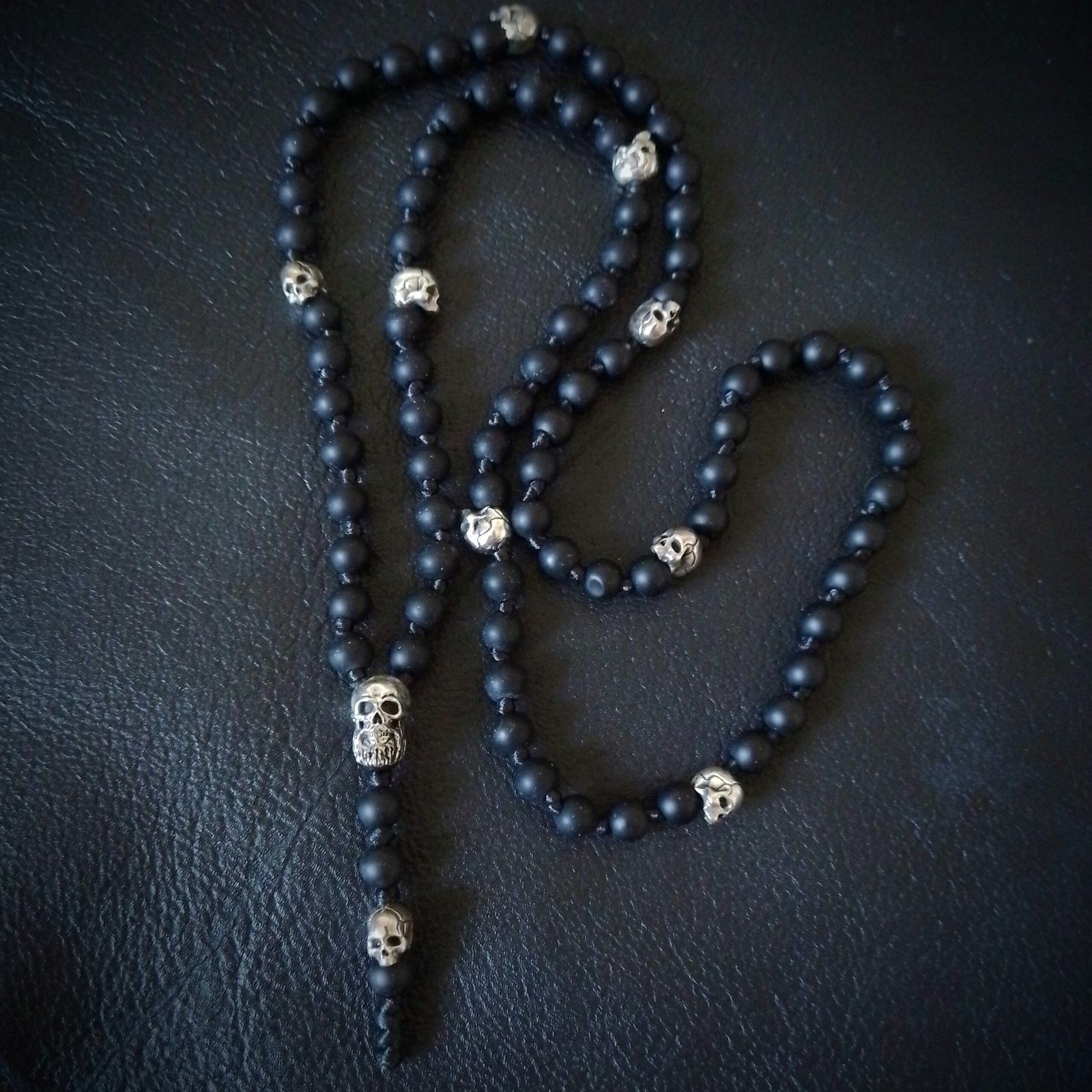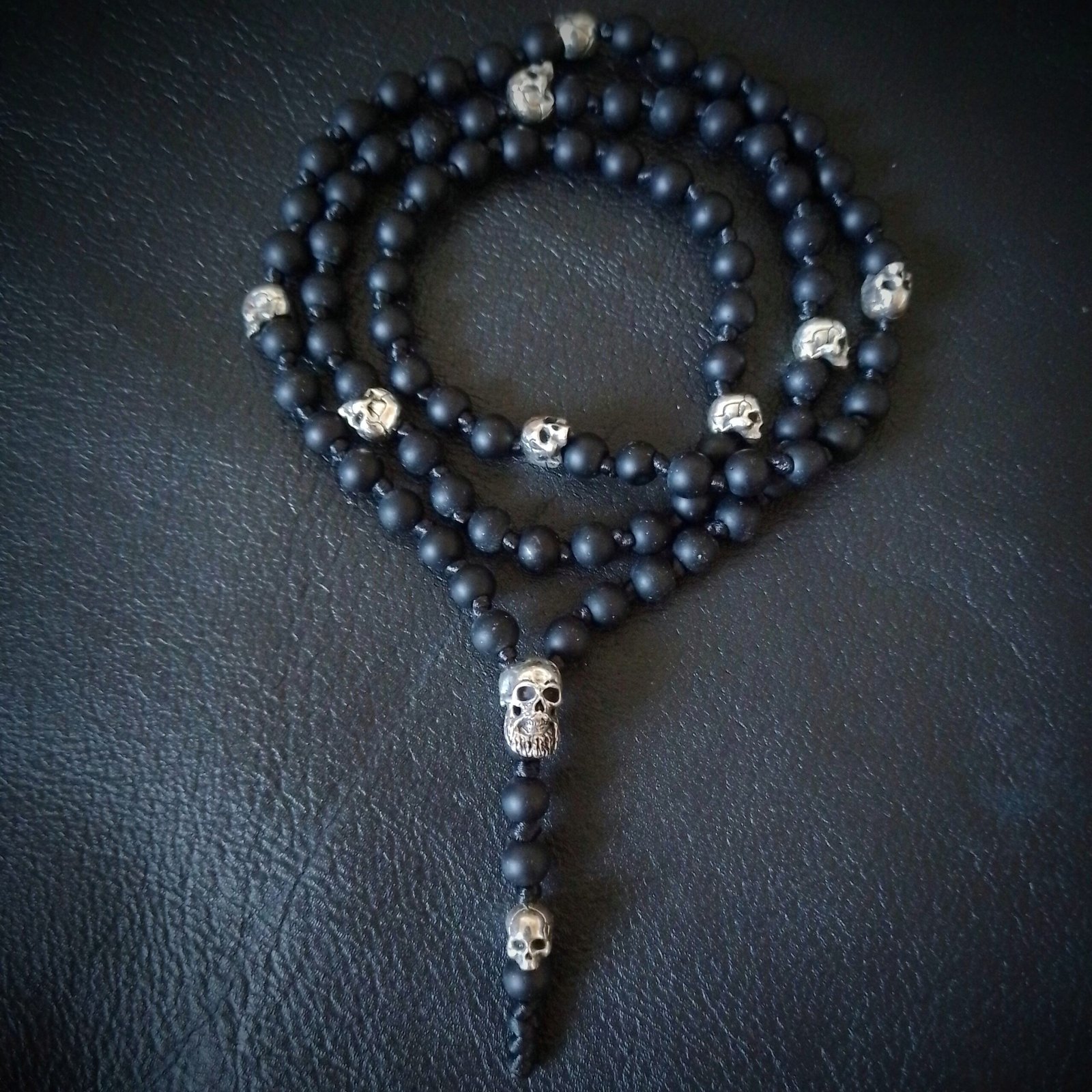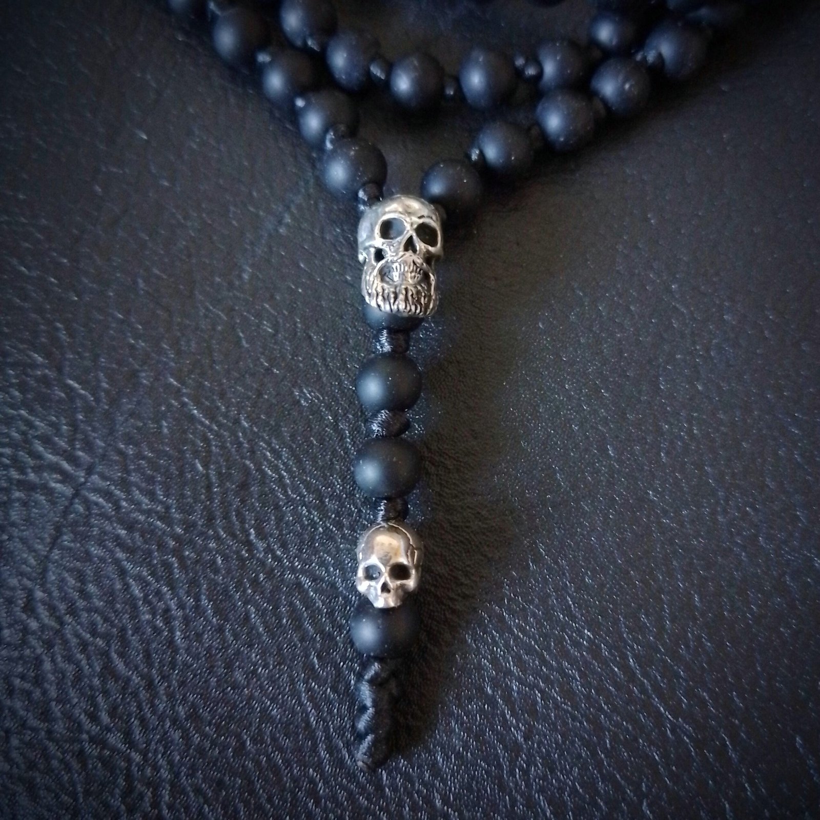 Чоловічі буси-розарій зі срібла та шунгіту . Авторські намистини , в центрі оригінальна намистина бородатого черепа .